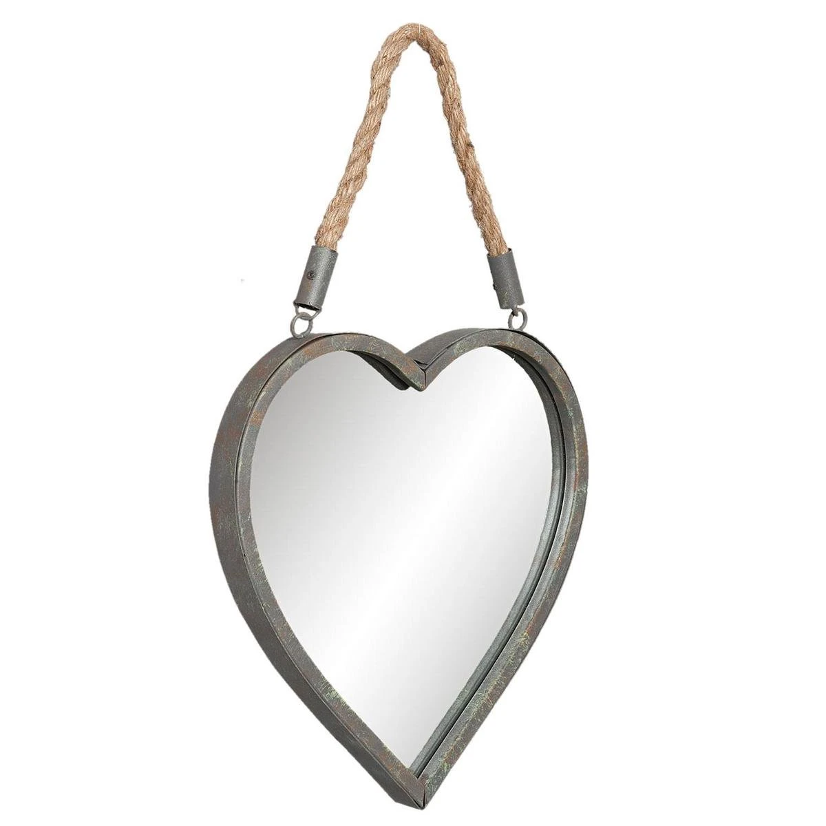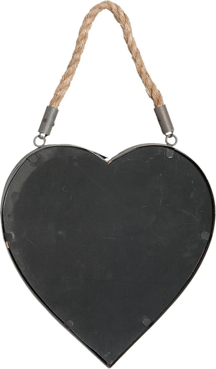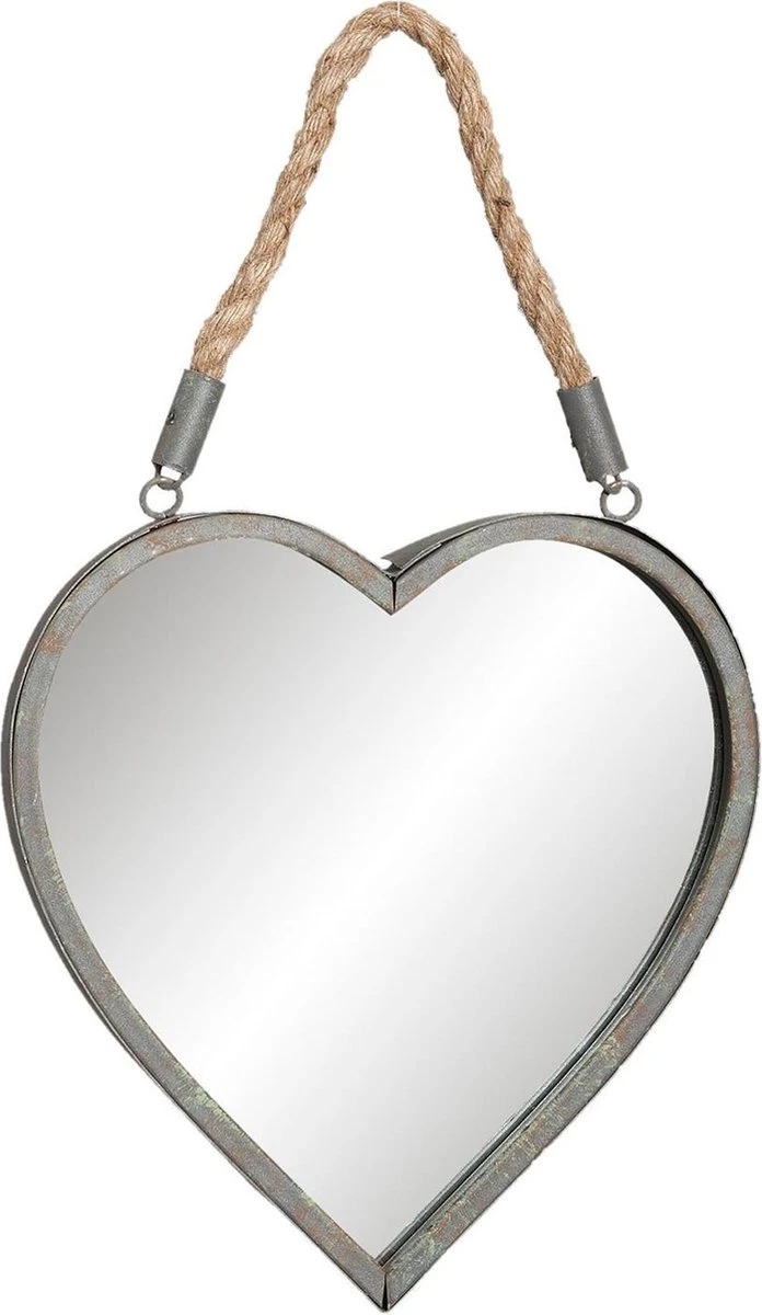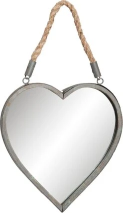 Grijs metalen moderne hartvormige spiegel hangend aan een touw van het merk Clayre & Eef Grote Spiegel Wand spiegel Muur spiegel