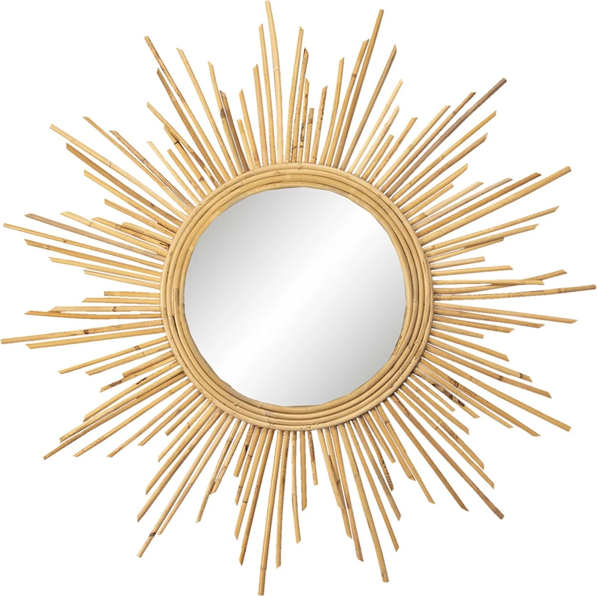 Goudkleurige retro rotan spiegel van het merk Clayre & Eef. Spiegel afmetingen: Ø30 cm