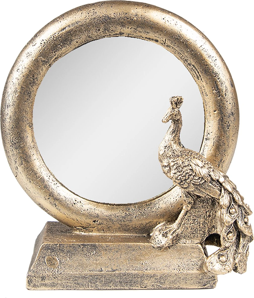 Mooie vintage koperkleurige tafelspiegel met een pauw ter decoratie gemaakt van ijzer en glas van het merk Clayre & Eef. Tafel Spiegel Decoratie Spiegel