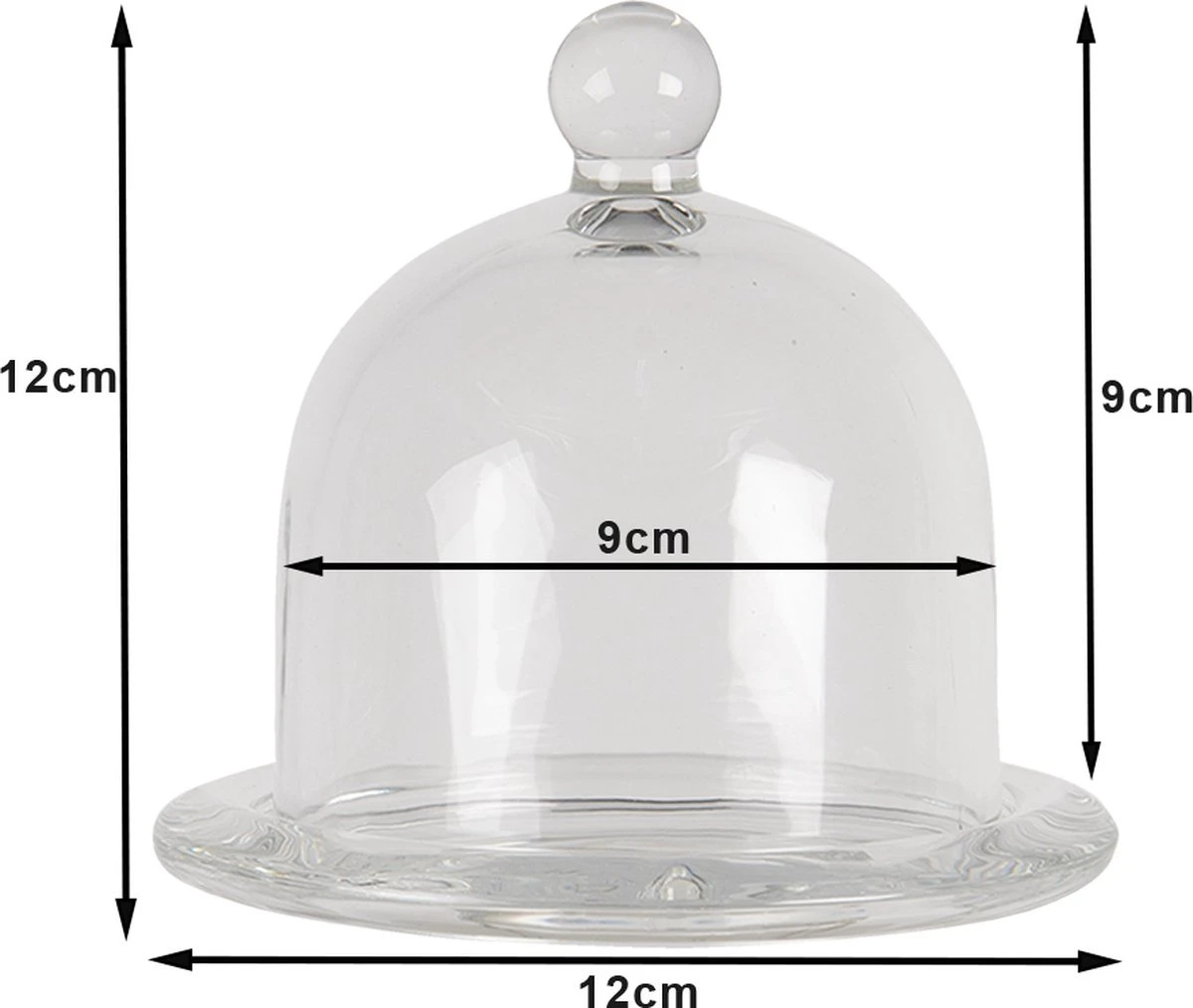 DECORATIEF GLAZEN STOLP: Onze glazen bel is 12 cm in hoogte (inclusief de basis) en heeft een totale basis diameter van 12 cm. De binnen diameter van het glas is 9 cm. De totale hoogte van het glas (exclusief basis) is 9 cm.