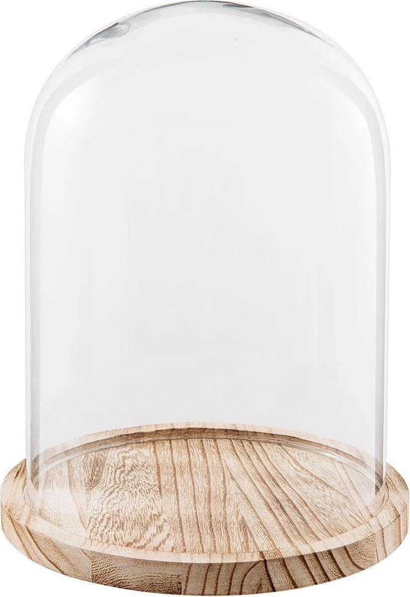 Glazen landelijke stolp op een houten stolpplateau van het merk Clayre & EefBinnenmaat stolp Ø 20*26 cmLet op, deze glazen zijn ambachtelijk geproduceerd. Hierdoor kan het voorkomen dat er een luchtbelletje of een streepje in het glas zit. Glazen Stol