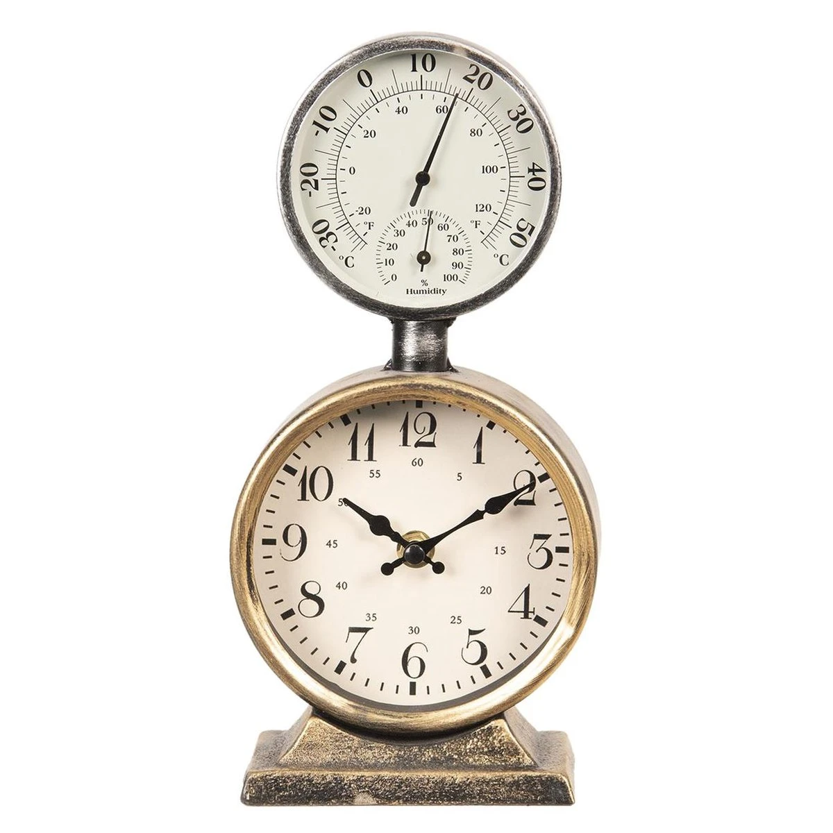 Retro Vintage Grijs Tafelklok Tafelklokken Binnen Staand Klokje Tafelklokje Metaal Rond