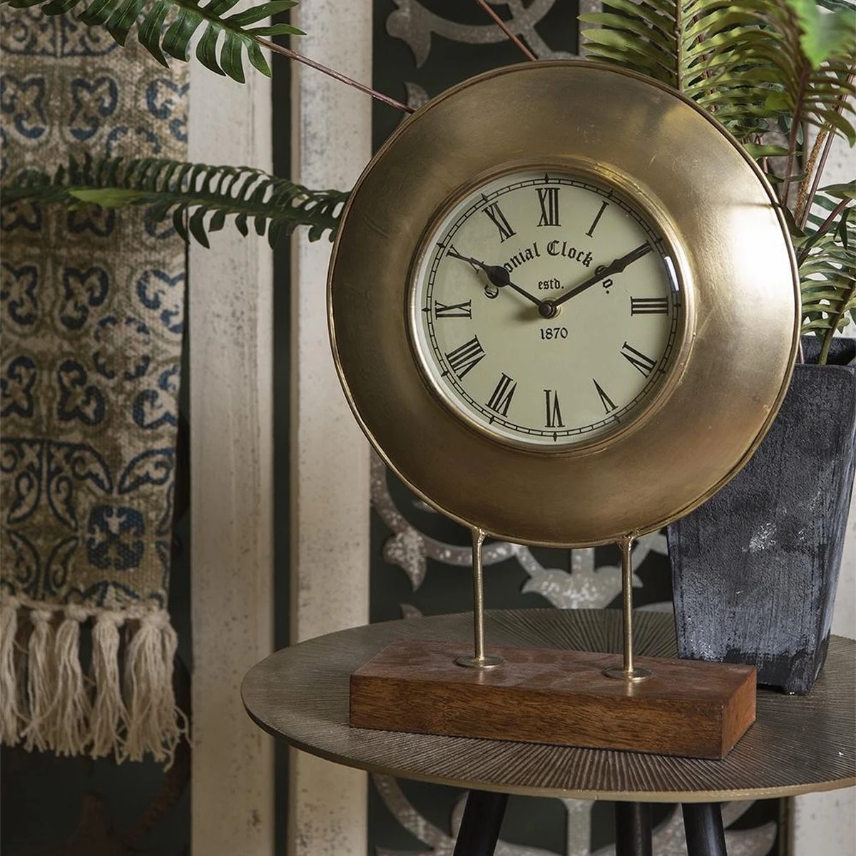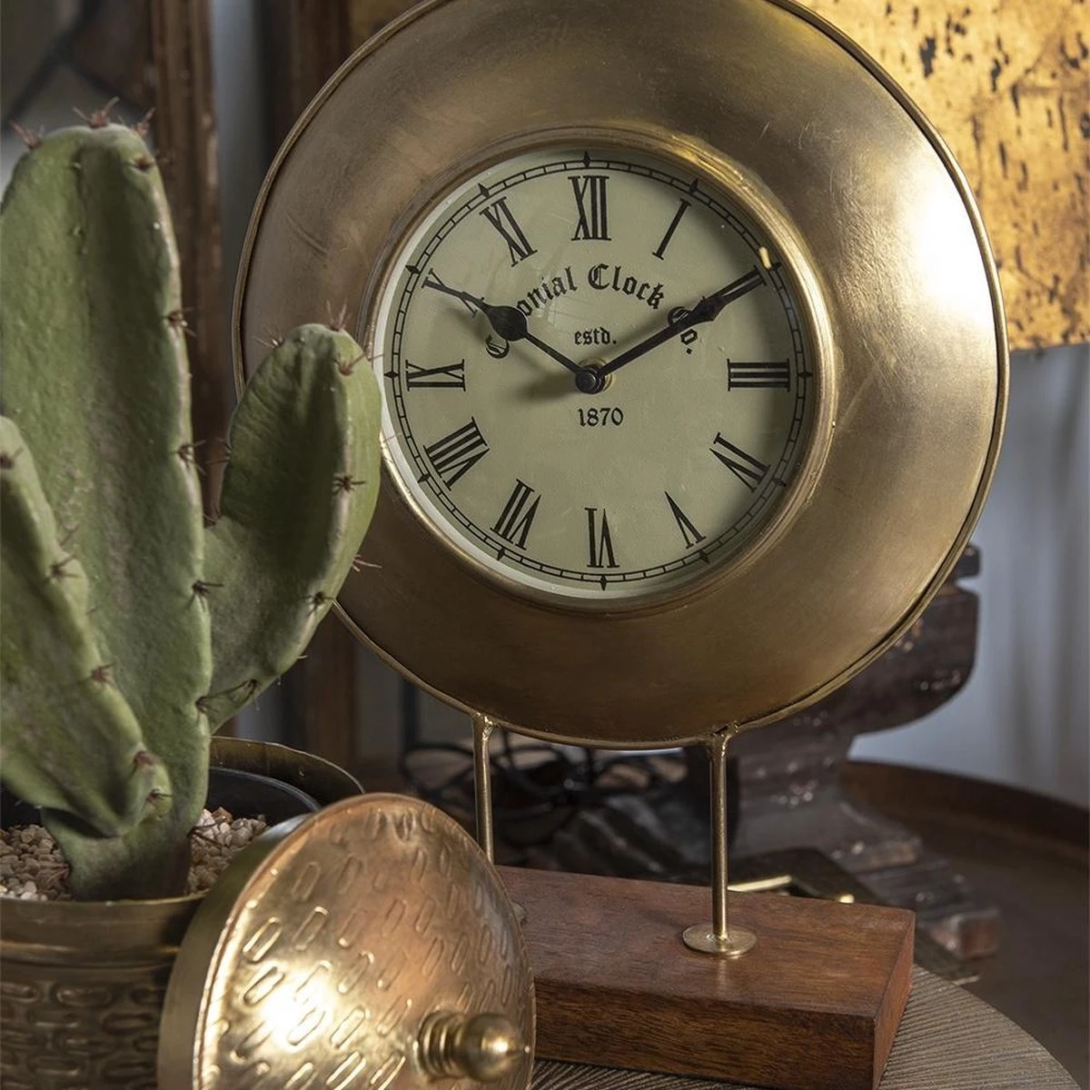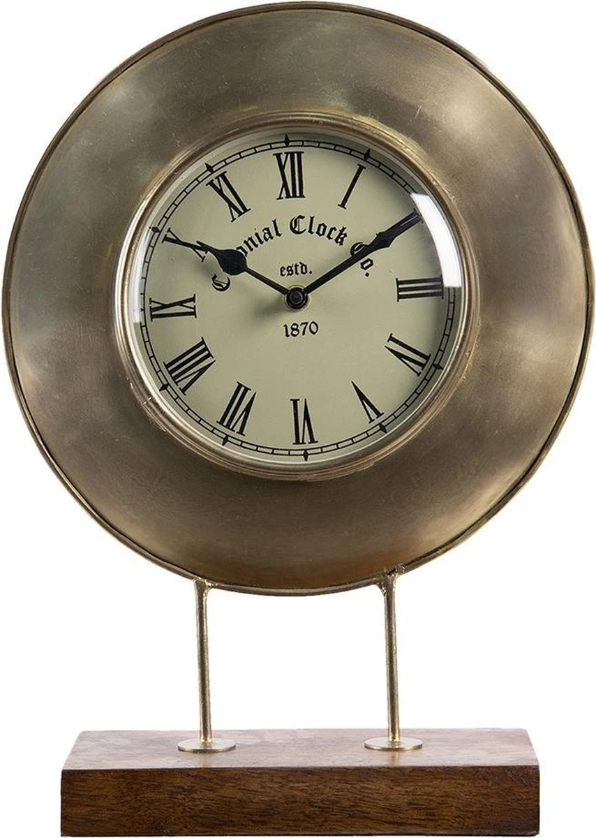 Vintage Goudkleurig Bruin Tafelklok Tafelklokken Binnen Staand Klokje Tafelklokje Ijzer Hout Rond