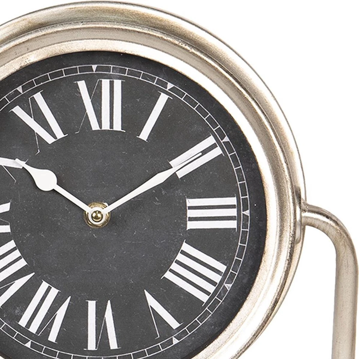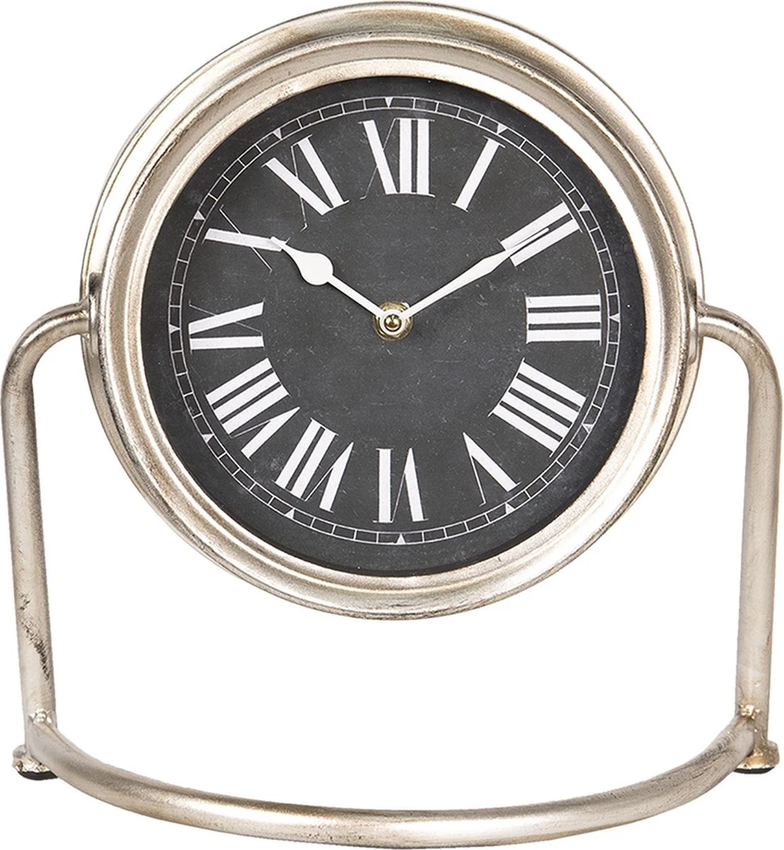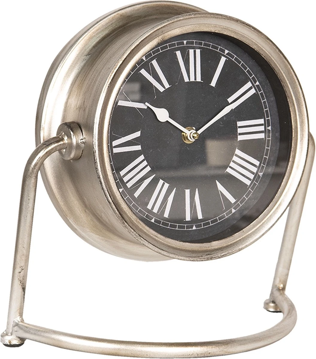 Zilverkleurige moderne staande klok met romeinse cijfers van het merk Clayre & Eef Tafelklokken Binnen Staand Klokje Tafelklokje
