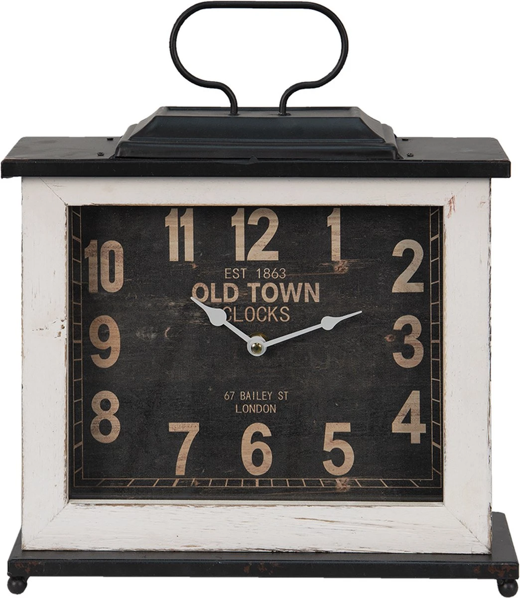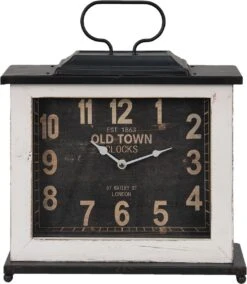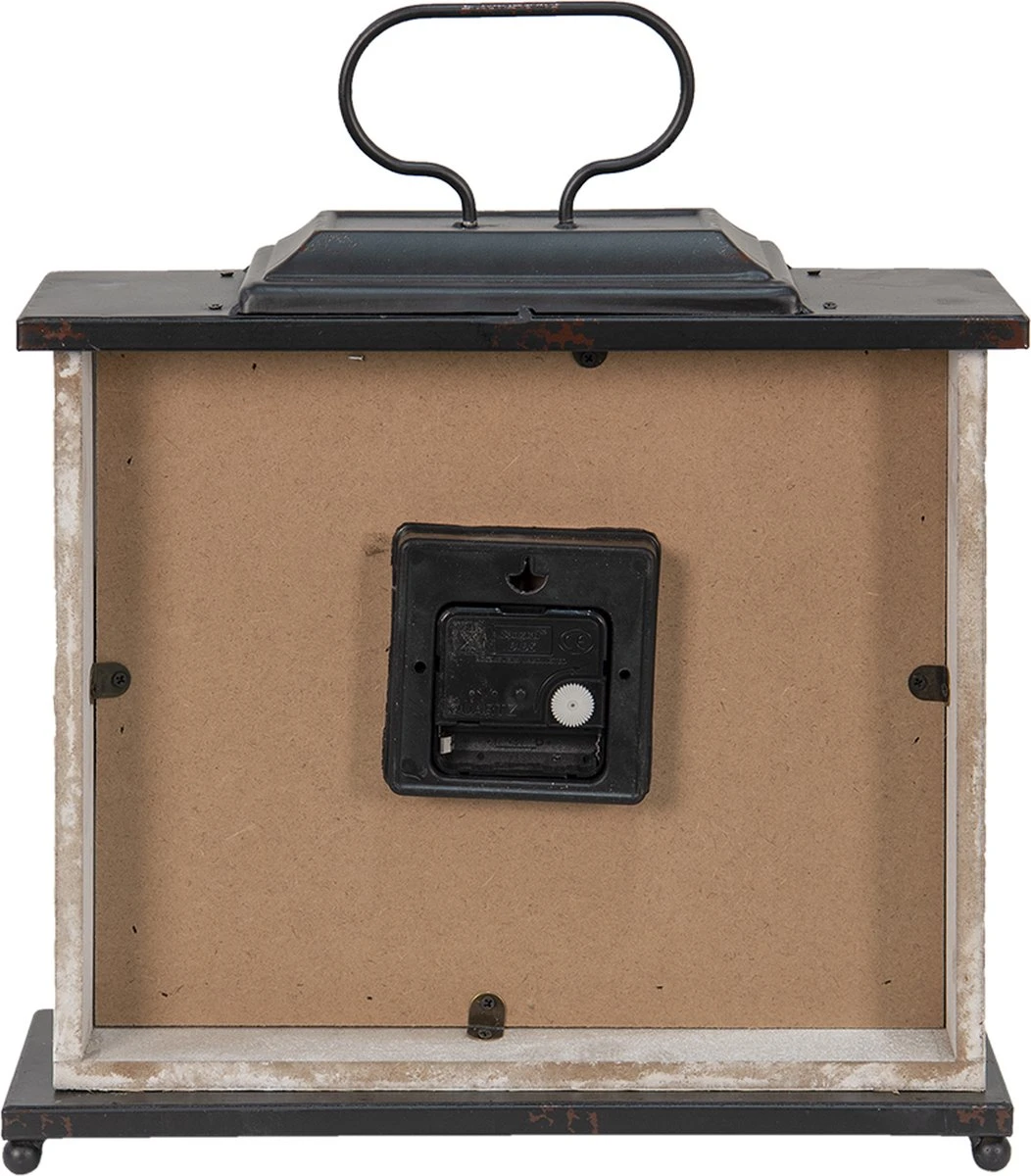Landelijke wit zwarte ijzer met houten tafelklok van het merk Clayre & Eef. Tafelklokken Binnen Staand Klokje Tafelklokje