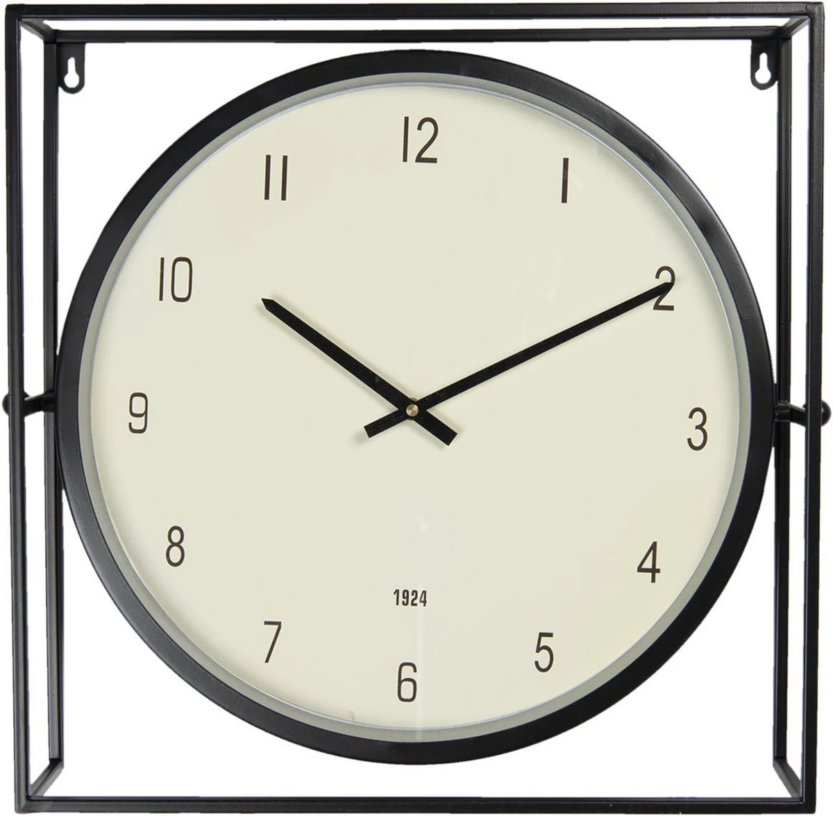 Tafelklok Tafelklokken Binnen Zwart Ijzer met beige wijzerplaat van het merk Clayre & Eef Tafelklokken Binnen Staand Klokje Tafelklokje