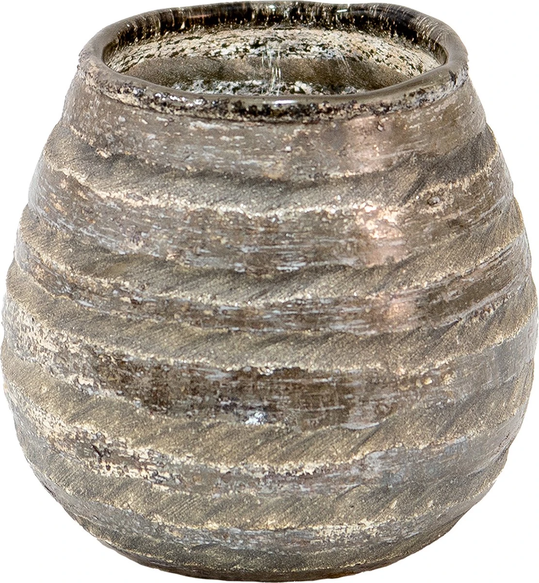 Landelijke grijs gestreepte glazen waxinelichthouder van het merk Clayre & Eef. Waxinelichthouder Windlichthouder