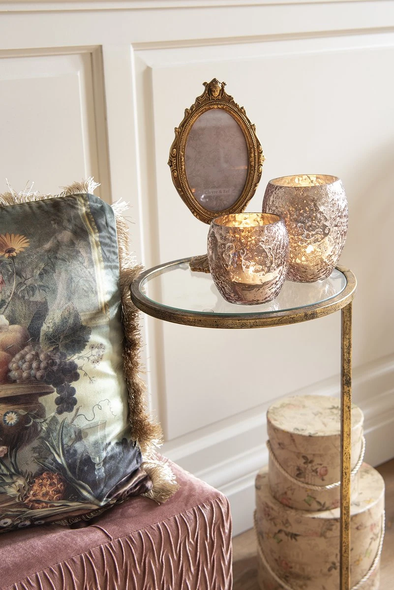 Theelichthouder van glas in paars met een glanzend effect van het merk Clayre & Eef in landelijke stijl met een romantische uitstraling.
