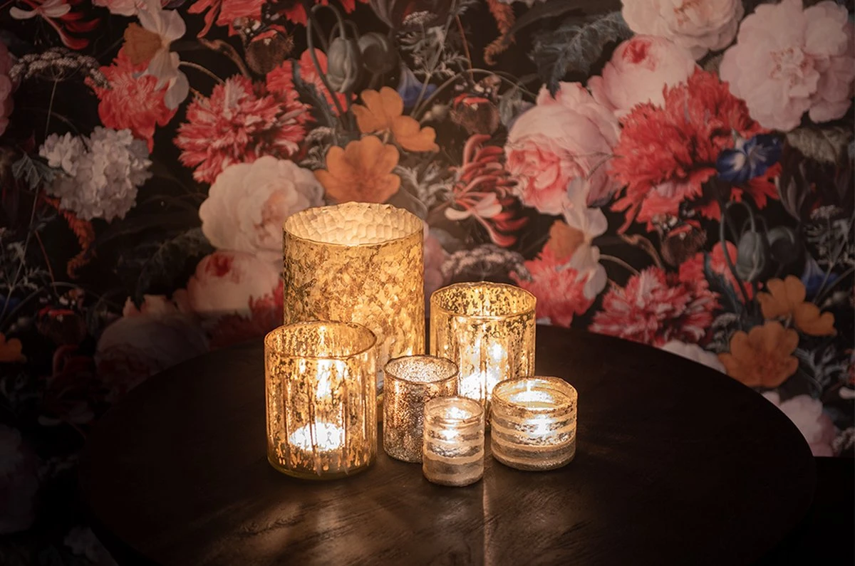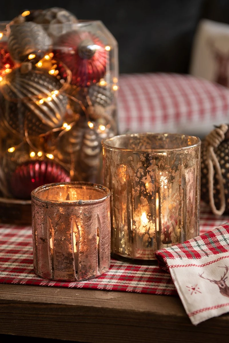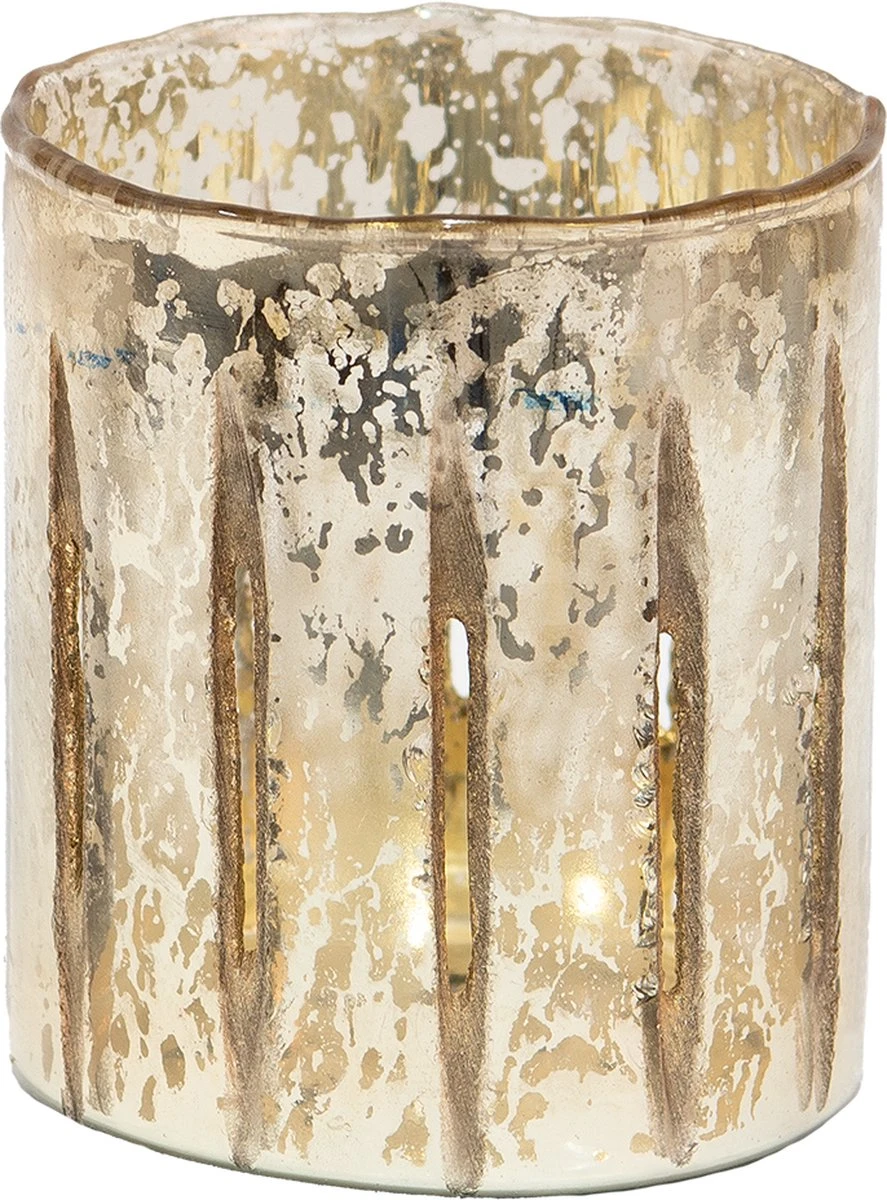 Goudkleurige glazen waxinelichthouder van het merk Clayre & Eef. Waxinelichthouder Windlichthouder