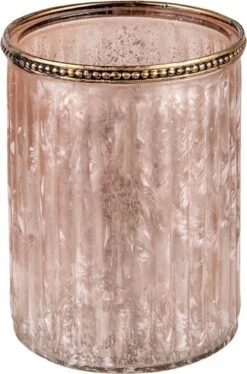 Landelijk Romantisch Beige, Roze Theelichthouder Waxinelichthouder Windlichthouder Glas Rond
