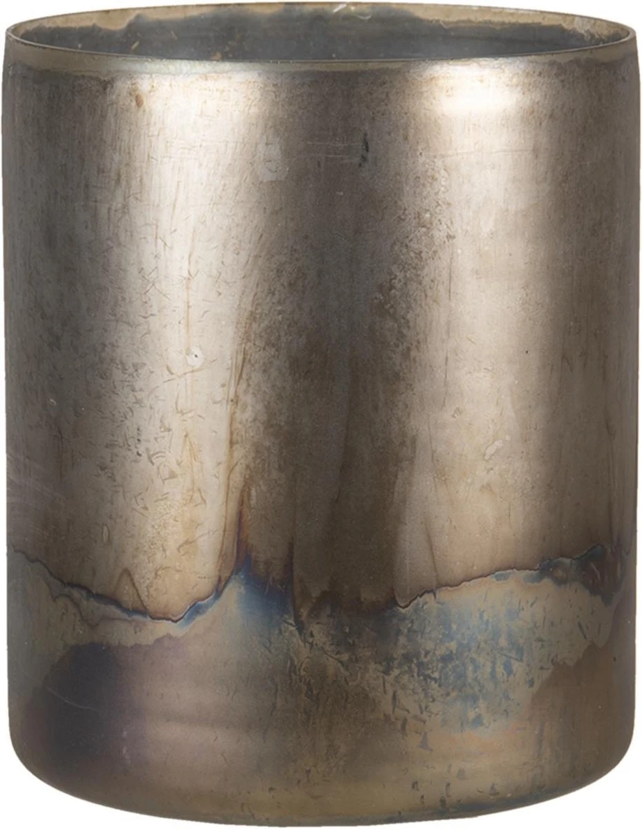 Landelijk Industrieel Goudkleurig Grijs Theelichthouder Waxinelichthouder Windlichthouder Glas Rond