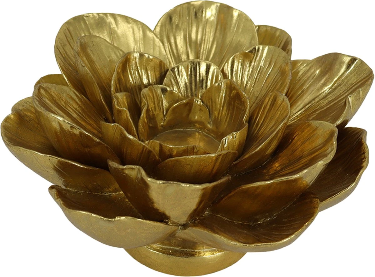 Decoratieve goudkleurige theelichthouder in de vorm van een bloem, van het merk Clayre & Eef. Waxinelichthouder Windlichthouder