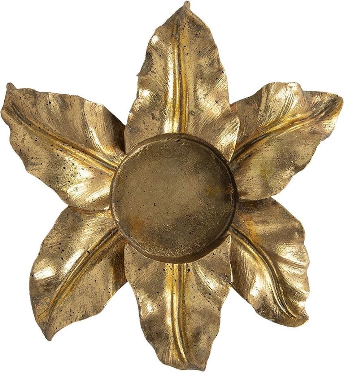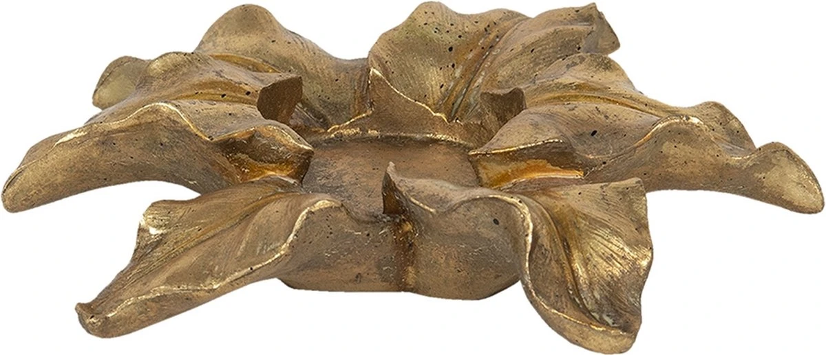 Goudkleurig beeld van een theelichthouder in de vorm van blaadjes van het merk Clayre & Eef Waxinelichthouder Windlichthouder