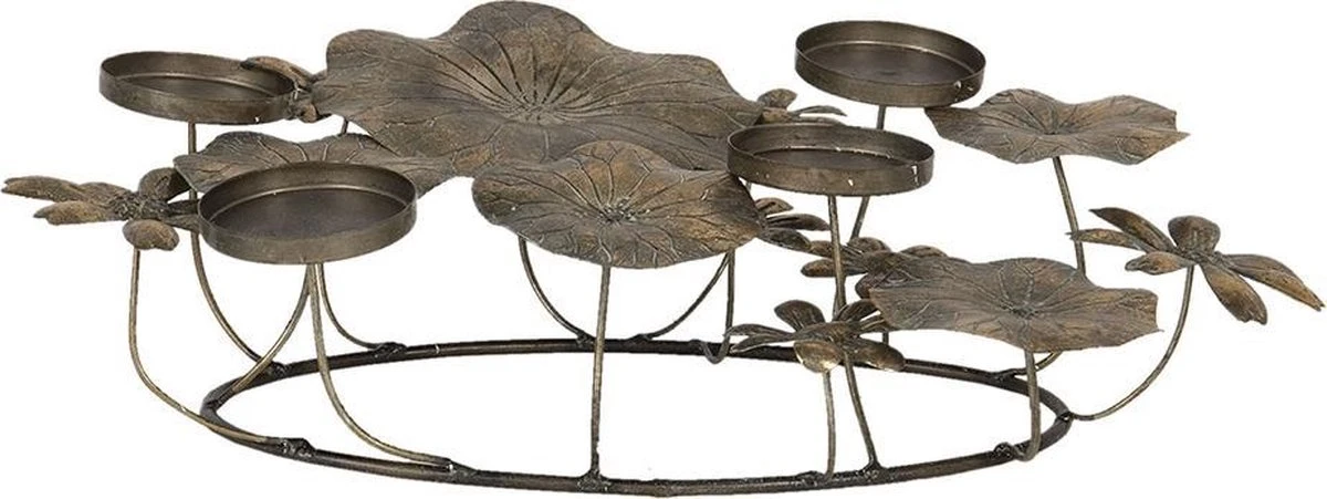 Theelichthouder van goudkleurig metaal in de vorm van een bloemenkrans van het merk Clayre & Eef in romantische stijl met een landelijke uitstraling. Waxinelichthouder Windlichthouder