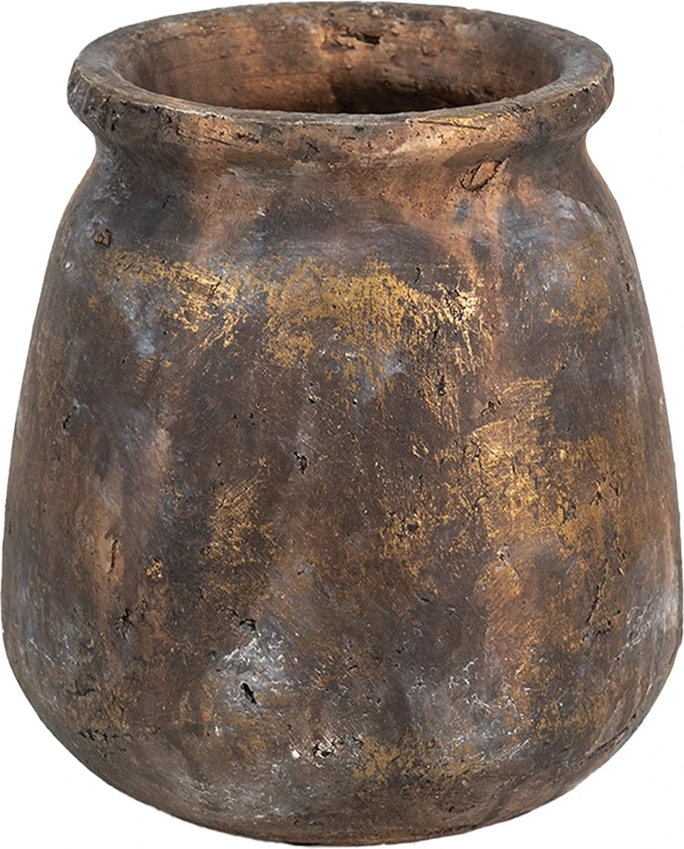 Landelijk Stoer Bruin Decoratie Vaas Decoratie Pot Terracotta Rond. De opening is Ø 12 cm.