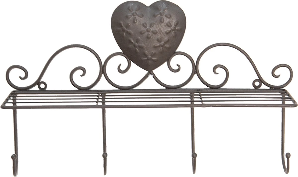 Romantisch Romantisch Bruin Wandkapstok 4 haken Hart Ijzer