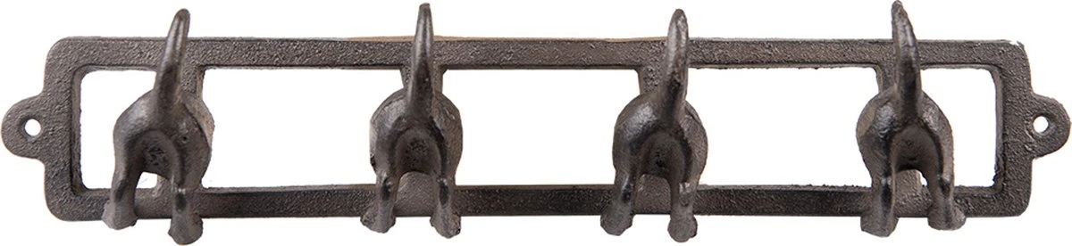 Decoratieve bruine, ijzeren wandkapstok met vier haken, in de vorm van hondenstaarten, in een landelijke stijl, van het merk Clayre & Eef. De kapstok heeft twee schroefgaten en is makkelijk te monteren. Decoratieve Kapstok
