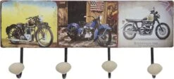 Landelijke bruine blauwe ijzeren kapstok, decoratieve kapstok met 4 haken van het merk Clayre & Eef. Decoratieve kapstok