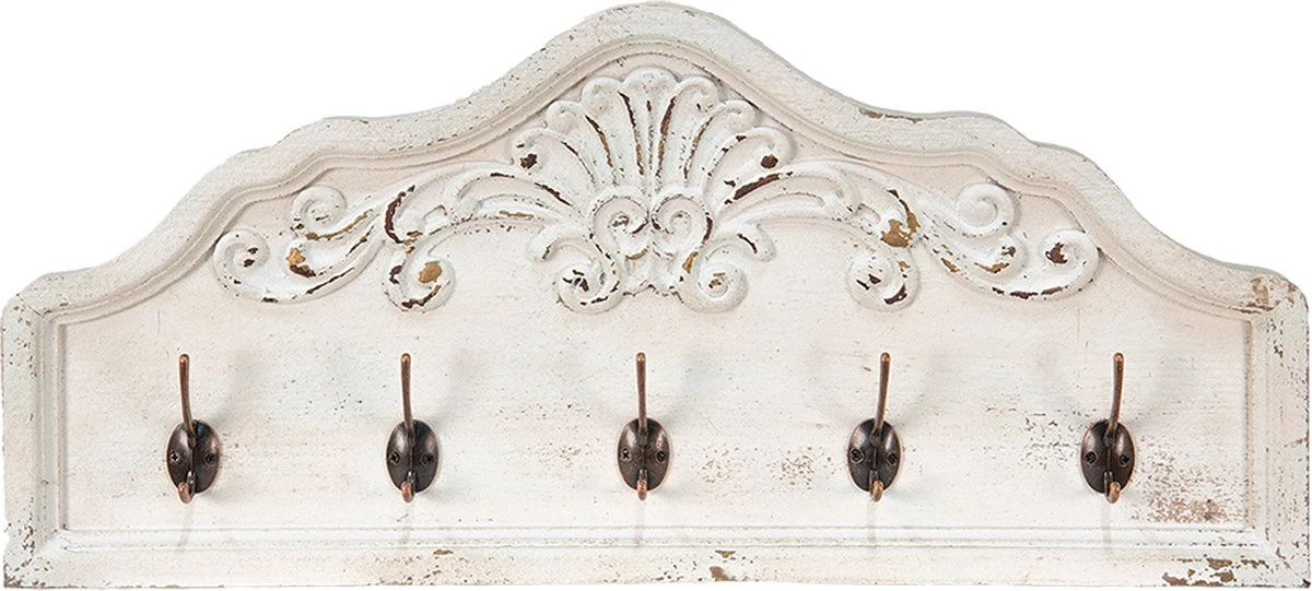 Wandkapstok 5 haken wit/ goudkleurig van Hout, Ijzer van het merk Clayre & Eef