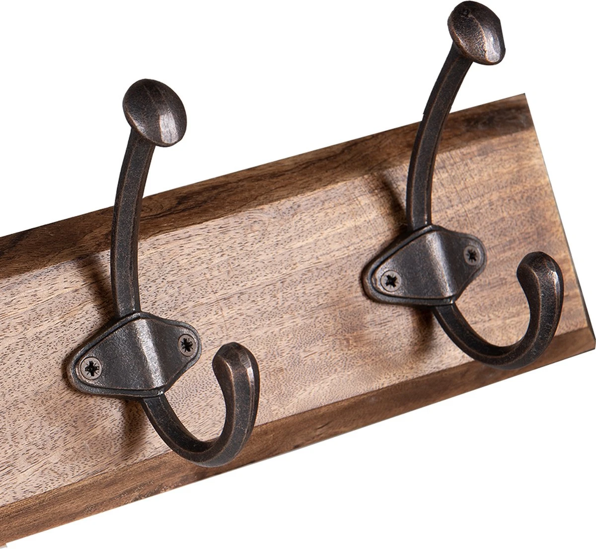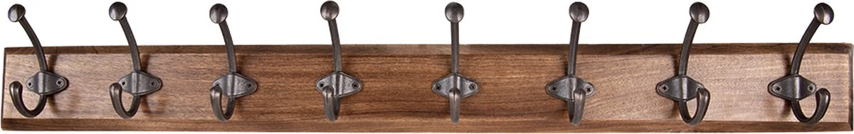 Mooie bruin houten wandkapstok met acht ijzeren haken in een landelijke stijl met een stoere uitstraling van het merk Clayre & Eef. Decoratieve kapstok
