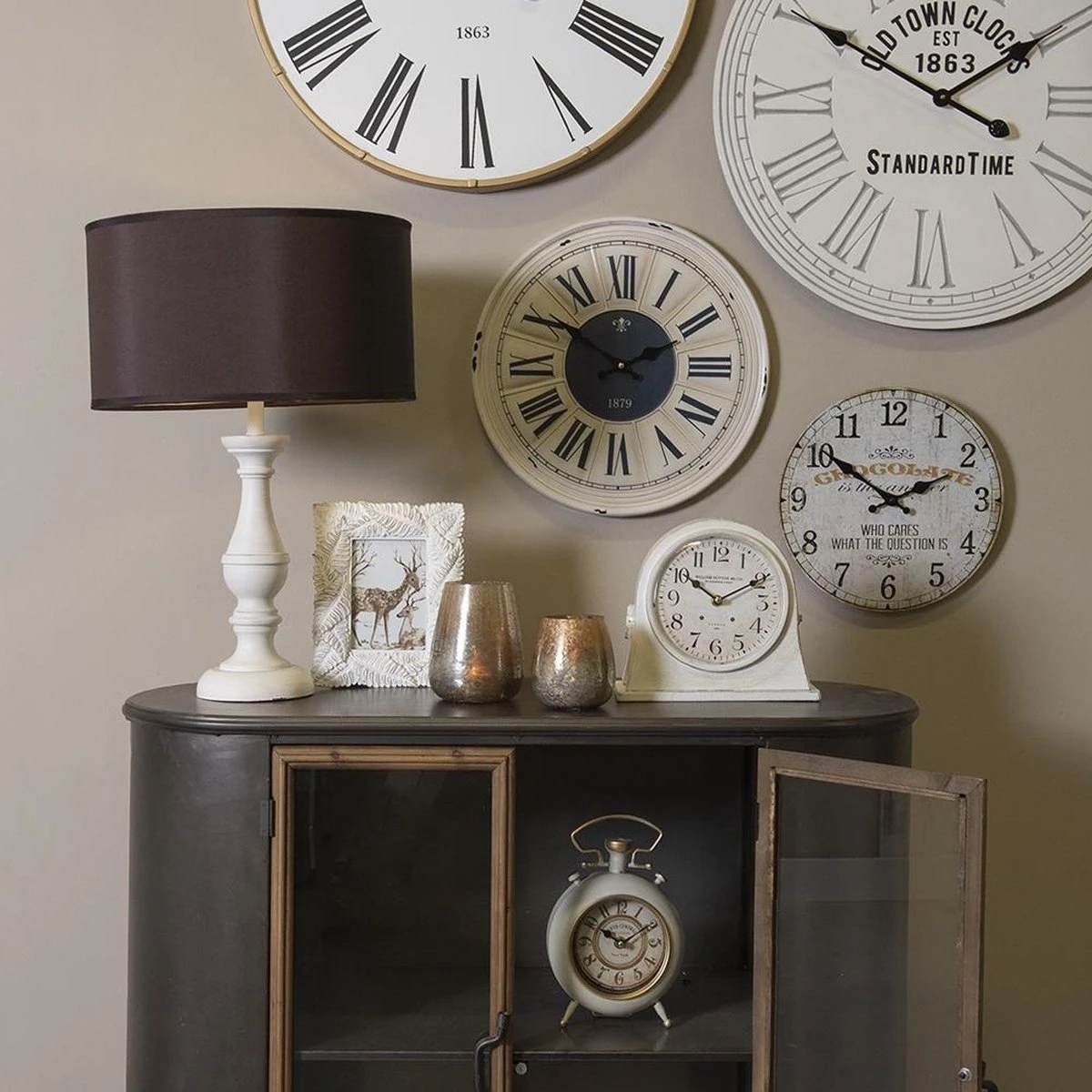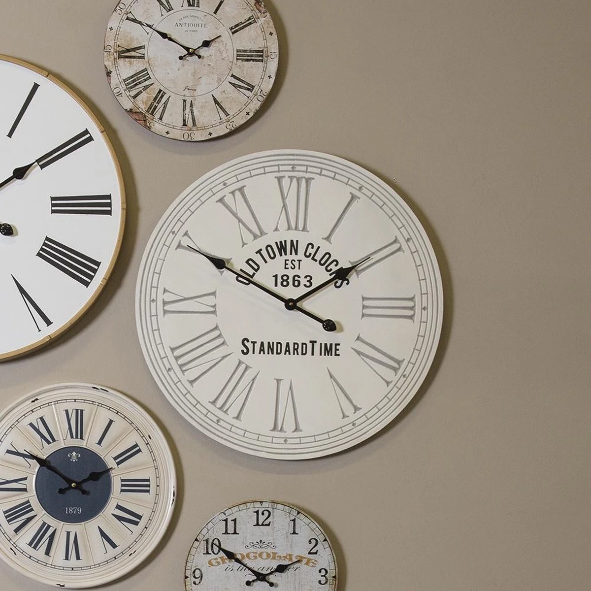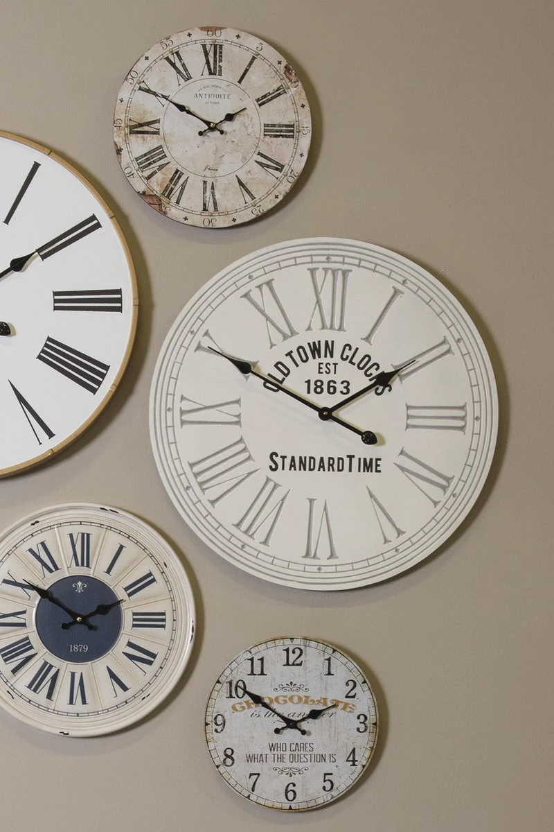 Vintage Retro Beige Wandklok Muurklok Hangklok Keukenklok MDF Rond