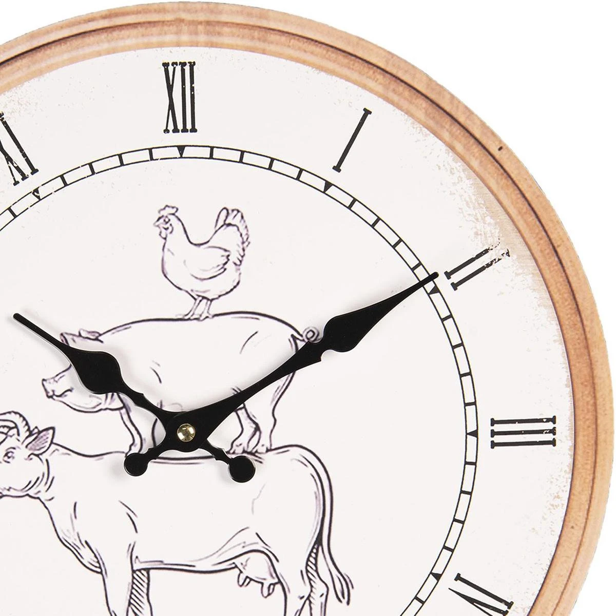 Witte landelijke klok met bruine rand en dieren op de achtergrond van het merk Clayre & Eef