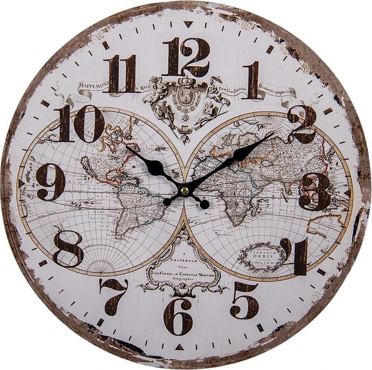 Wandklok Muurklok Wit MDF Wereldkaart
