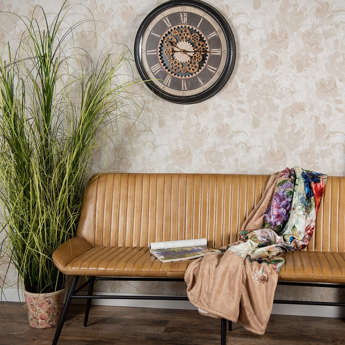 Ronde zwarte landelijke klok met romeinse cijfers en zichtbaar en werkend raderwerk van het merk Clayre & Eef. Muurklok Hangklok