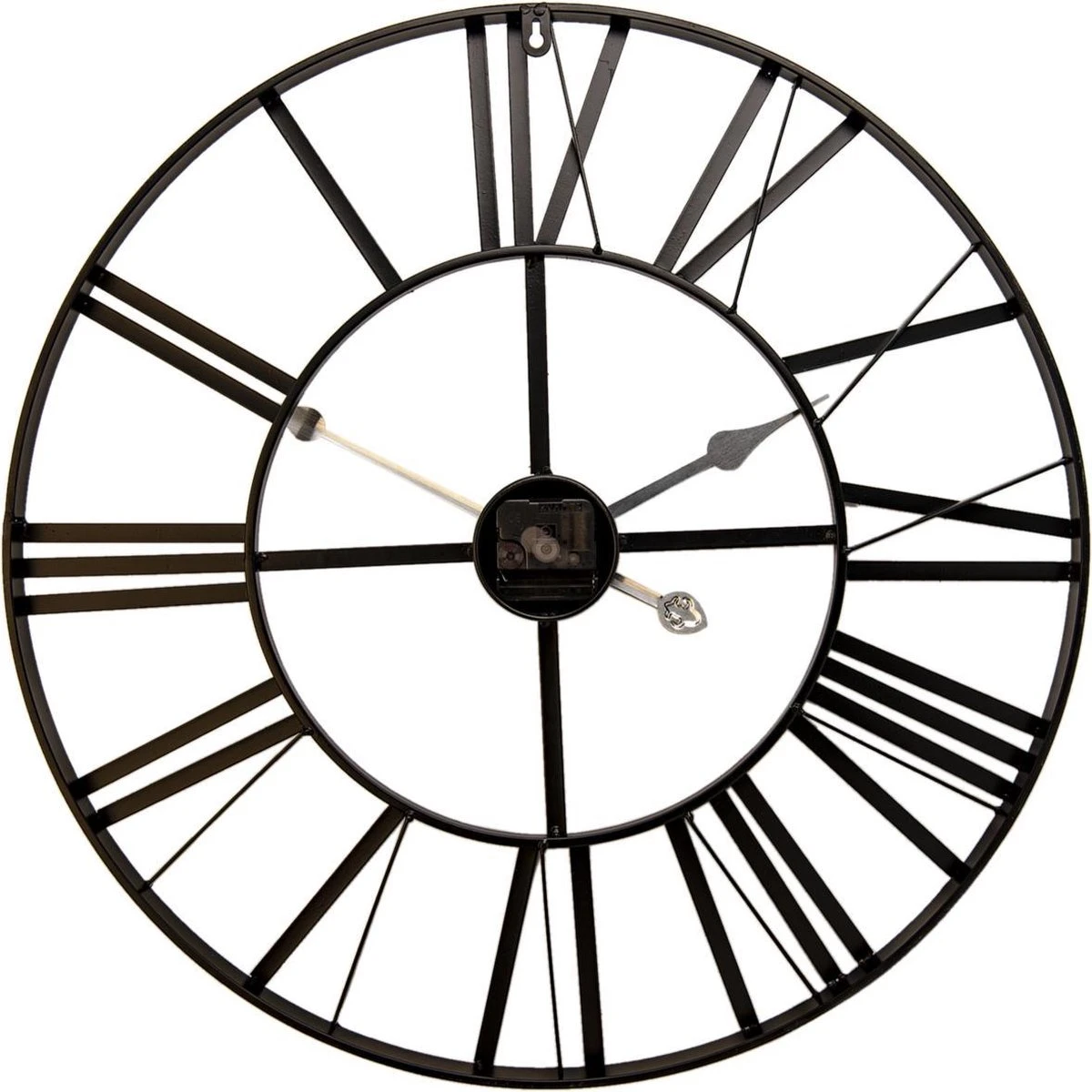 Zwart metalen industriële strakke klok met romeinse cijfers van het merk Clayre & Eef Muurklok Hangklok Keukenklok