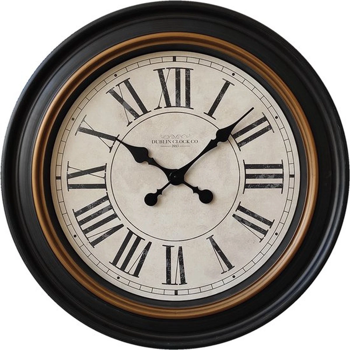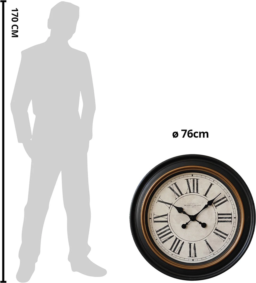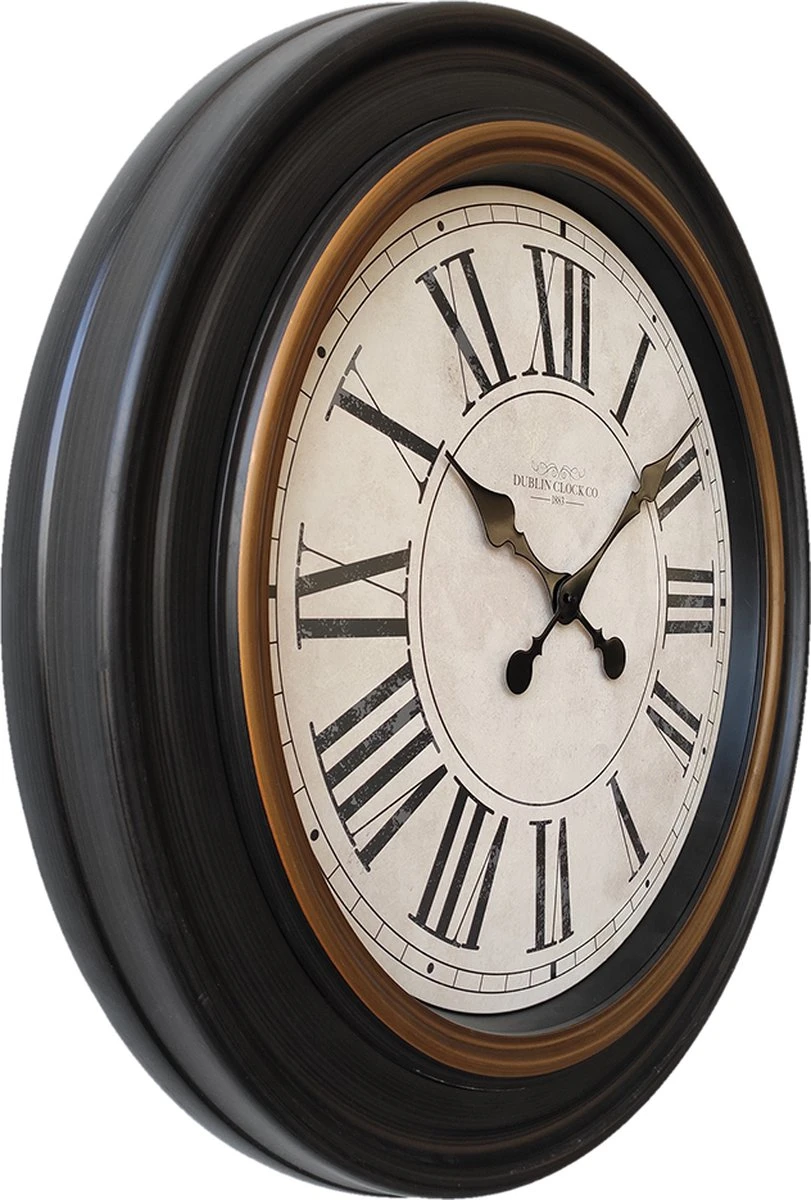 Ronde zwarte landelijke klok met romeinse cijfers van het merk Clayre & Eef. Muurklok Hangklok Keukenklok