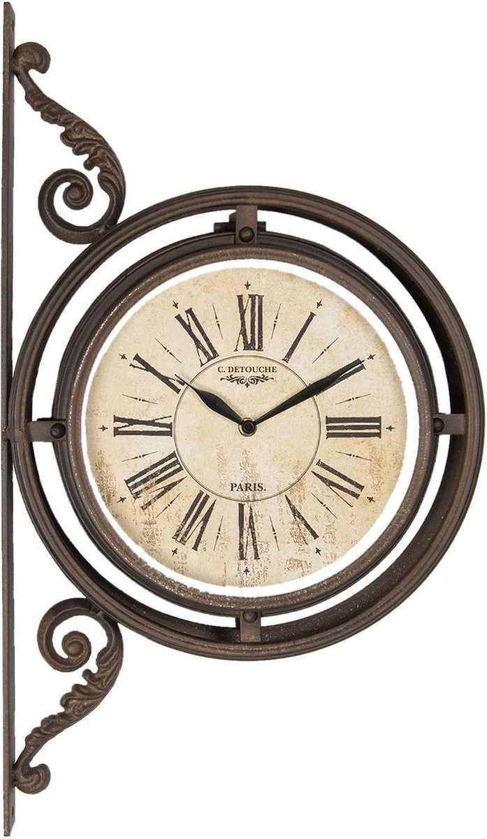 Dubbelzijdige metalen stationsklok met cijfers van het merk Clayre & Eef. Muurklok Hangklok Keukenklok