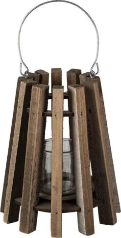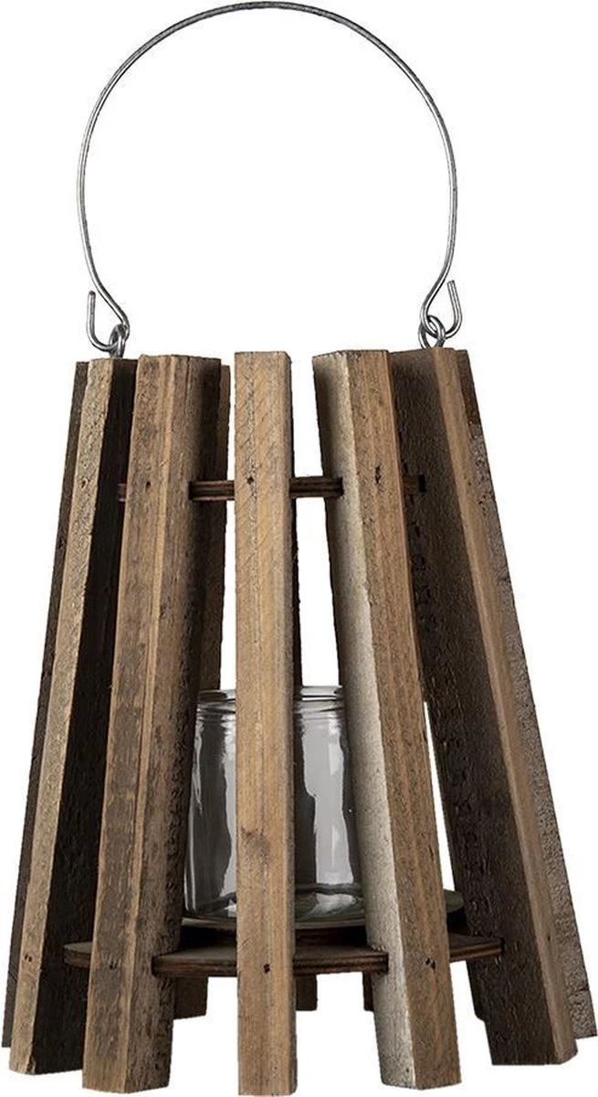 Landelijk houten windlicht van het merk Clayre & Eef. Kaarsenhouder Sfeerverlichting