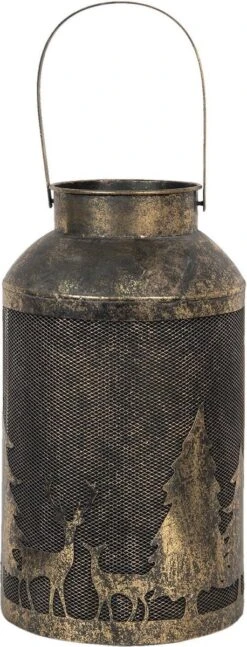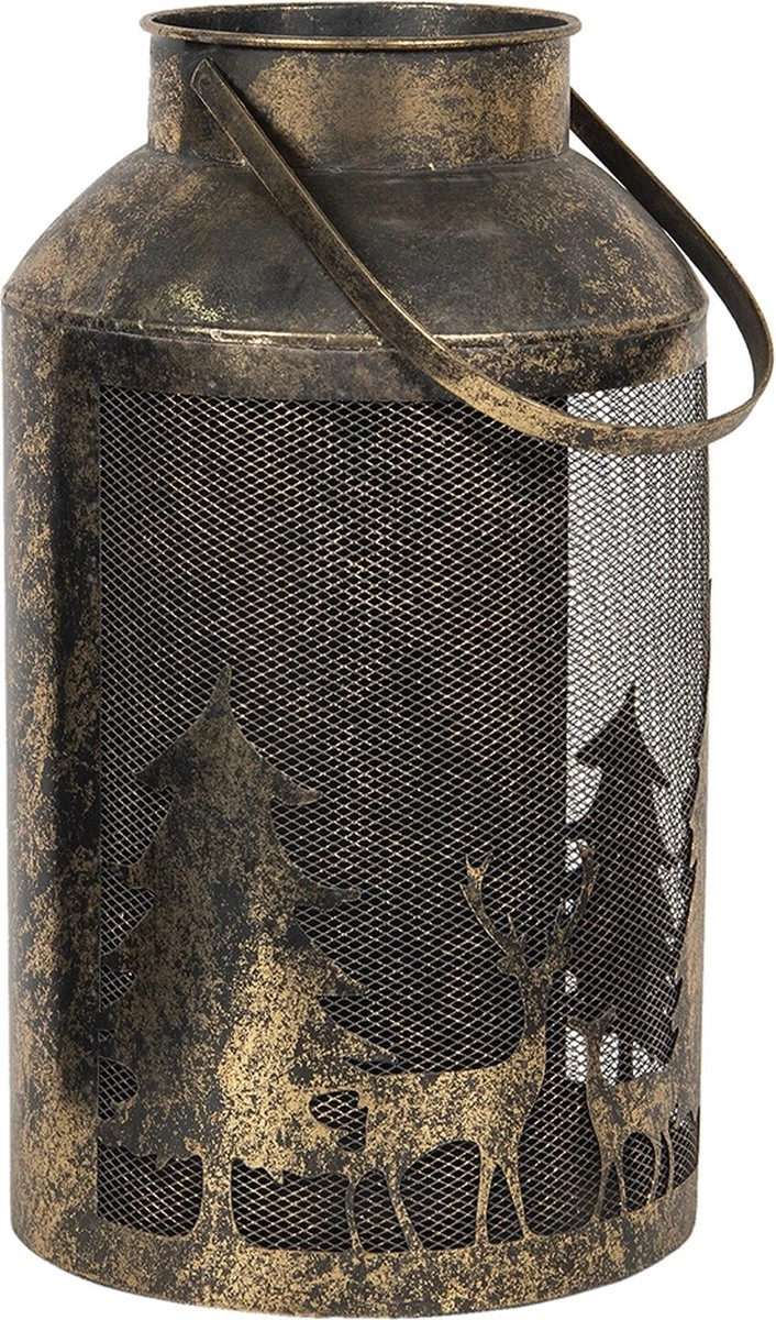 Landelijk koperkleurig metalen windlicht van het merk Clayre & Eef. Kaarsenhouder Sfeerverlichting