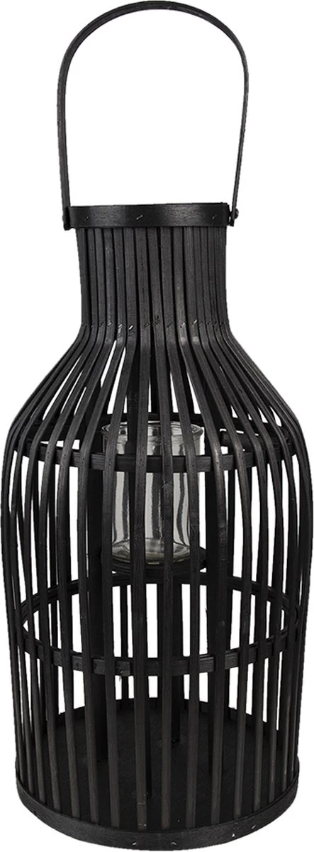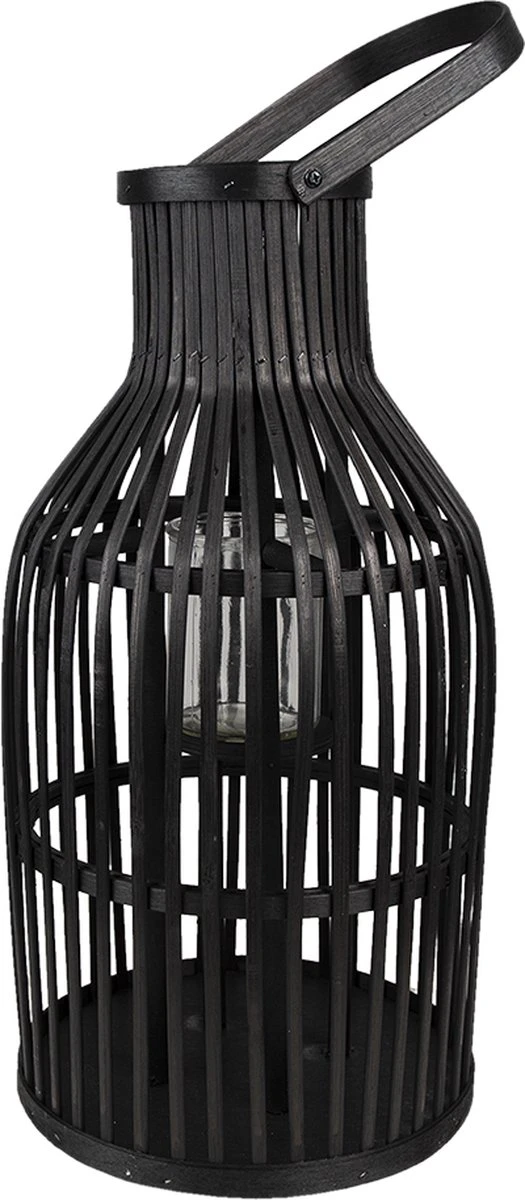 Zwart landelijk windlicht van bamboe, inclusief een glaasje, van het merk Clayre & Eef. Kaarsenhouder Sfeerverlichting
