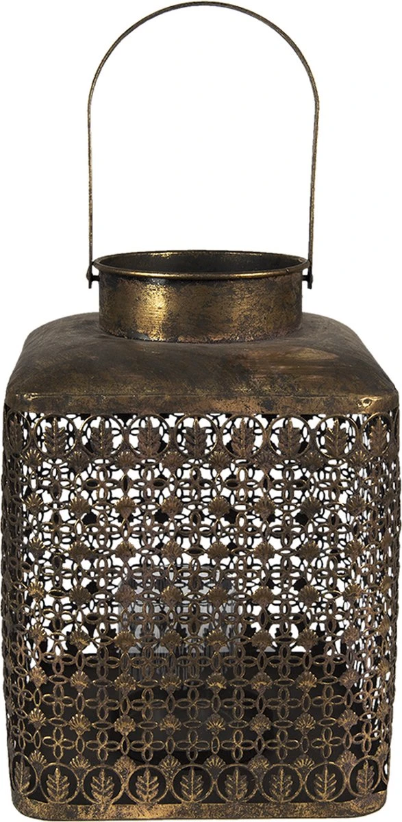 Koperkleurig landelijk metalen windlicht van het merk Clayre & Eef. Kaarsenhouder Sfeerverlichting