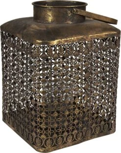 Landelijk Industrieel Koperkleurig Windlicht Kaarsenhouder Sfeerverlichting Ijzer Vierkant