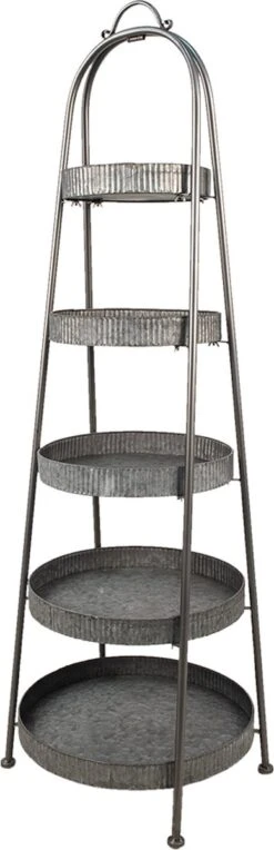Clayre & Eef Etagère 5 Laags 48x48x150 Cm Grijs Ijzer Rond Opberg Rek Rek