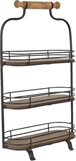 Clayre & Eef Etagère 3 Laags 51 Cm Zwart Bruin Ijzer Hout Ovaal Etagère Hout