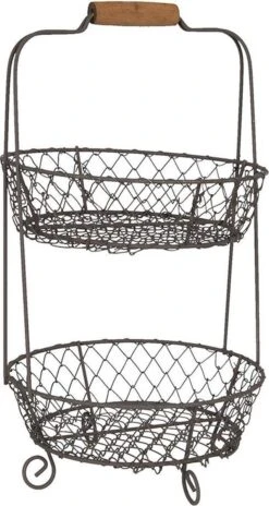 Clayre & Eef Etagère 2 Laags Ø 24×36 Cm Zwart Ijzer Rond Fruitschaal Etagère Serveerschaal