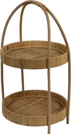 Clayre & Eef Etagère 2 Laags Ø 30×54 Cm Bruin Rotan Rond Fruitschaal Etagère Serveerschaal