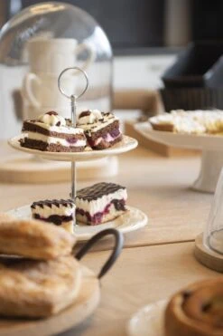Clayre & Eef Etagère 2 Laags 23 Cm Beige Keramiek Rond Roosjes Taartplateau Serveerschaal