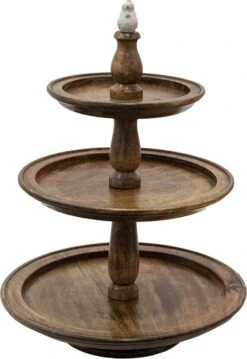 Clayre & Eef Etagère 3 Laags Ø 29×40 Cm Bruin Wit Hout Rond Fruitschaal Etagère Serveerschaal