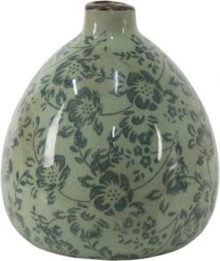 Clayre & Eef Vaas Ø 13×14 Cm Groen Keramiek Bloemen Decoratie Vaas Decoratie Pot Bloempot Binnen