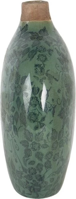 Clayre & Eef Vaas Ø 17×35 Cm Groen Keramiek Bloemen Decoratie Vaas Decoratie Pot Bloempot Binnen