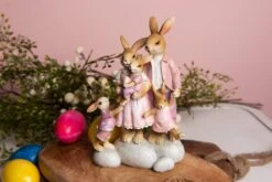 Clayre & Eef Beeld Konijn 11x12x24 Cm Beige Roze Kunststof Woonaccessoires Paashaas Pasen
