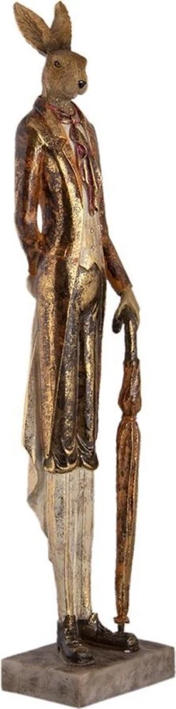 Clayre & Eef Beeld Konijn 11x9x51 Cm Goudkleurig Kunststof Woonaccessoires Paashaas Pasen