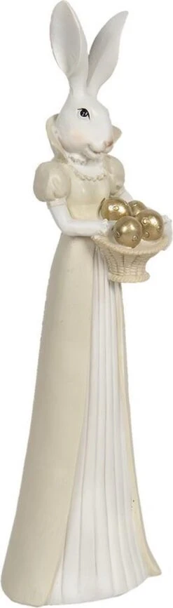 Clayre & Eef Beeld Konijn 11x10x37 Cm Wit Geel Polyresin Woonaccessoires Pasen Paashaas