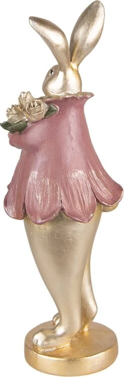 Clayre & Eef Beeld Konijn 12 Cm Bruin Roze Kunststof Woonaccessoires Paashaas Pasen