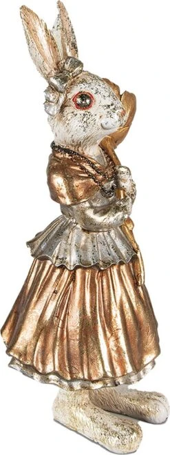 Clayre & Eef Beeld Konijn 14x13x24 Cm Beige Goudkleurig Kunststof Woonaccessoires Paashaas Pasen