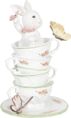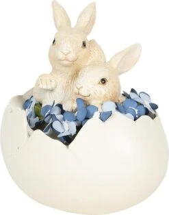 Clayre & Eef Beeld Konijn 14x10x14 Cm Wit Kunststof Ovaal Woonaccessoires Pasen Paashaas